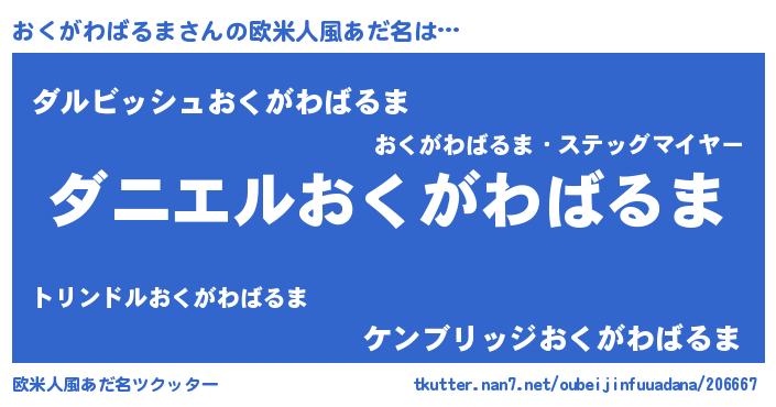 | 男性向けラノベタイトル風あだ名 | 『おまえをオタクにしてやるから、俺をおくがわばるまにしてくれ! 』 |