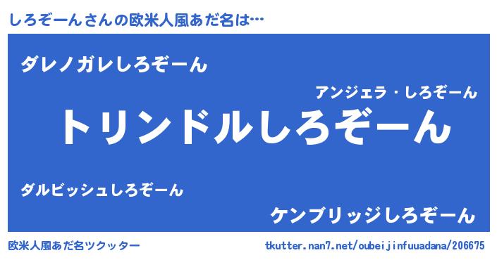 | 男性向けラノベタイトル風あだ名 | 『転生したらしろぞーんだった件』 |