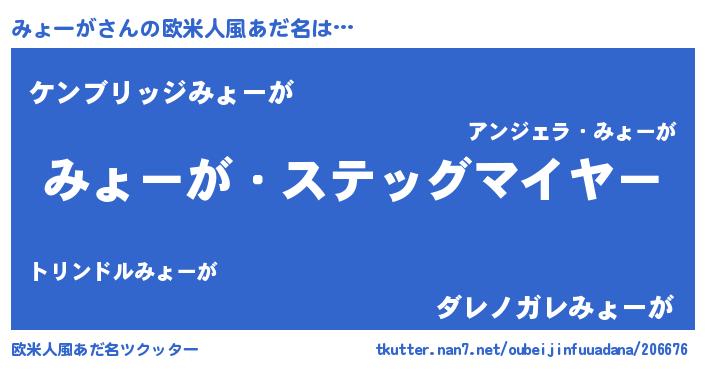 | 男性向けラノベタイトル風あだ名 | 『うちのみょーがが世界を掌握している!』 |