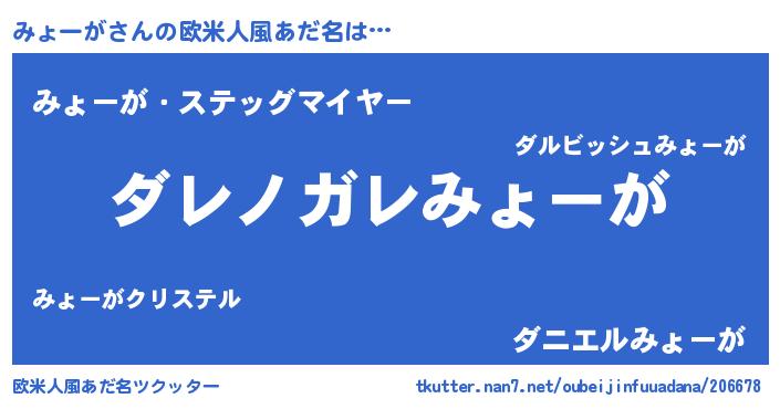 | 意味不明あだ名 | 『住所不定無職みょーが(6歳)』 |