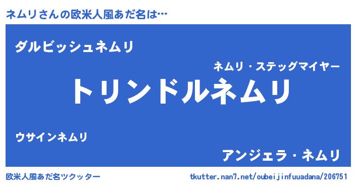 | 男性向けラノベタイトル風あだ名 | 『ネムリ~年齢イコール彼女いない歴の魔法使い~』 |