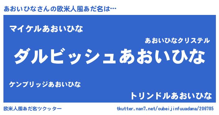 | 女子向けラノベタイトル風あだ名 | 『異世界で失敗しない100のあおいひな』 |