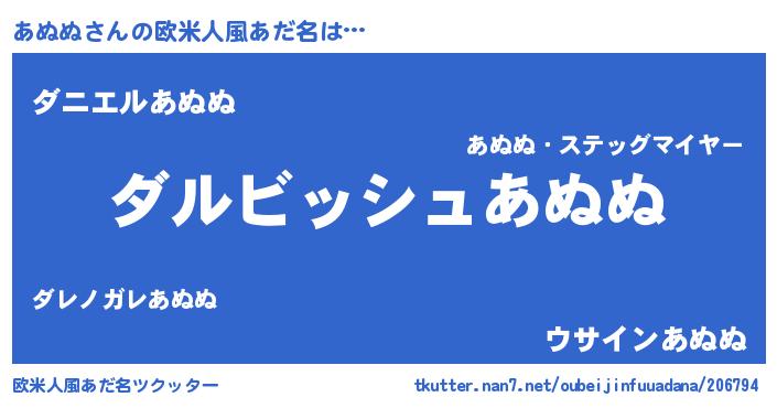 | ヘコむあだ名 | 『あぬぬ(爆)』『あぬぷりん』 |
