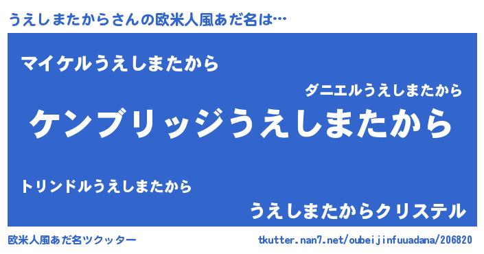 女子向けラノベタイトル風あだ名 | 『うえしまたからなんてお断りですっ。』 |