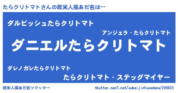 ヘコむあだ名 | 『たらクリトマト(小並感)』『たらっふぃ~』 |