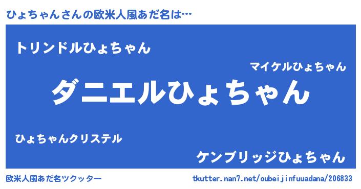 | 男性向けラノベタイトル風あだ名 | 『おまえをオタクにしてやるから、俺をひょちゃんにしてくれ! 』 |