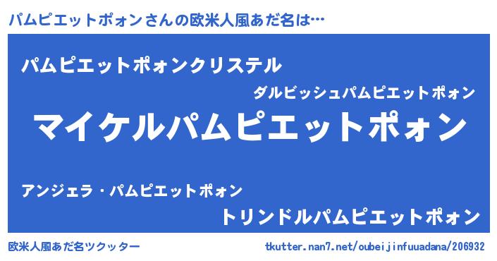 | 男性向けラノベタイトル風あだ名 | 『パムピエットポォンの憂鬱』 |