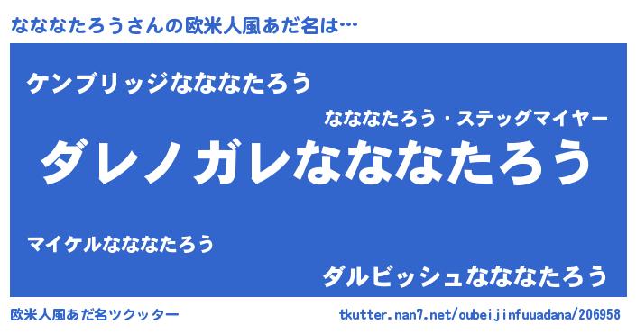 男性向けラノベタイトル風あだ名 | 『魔弾の王となななたろう』 |