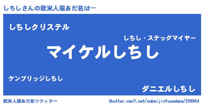 | ヒーロー風カッコイイあだ名 | 『スーパーシチシ』『ウルトラしちしマン』 |