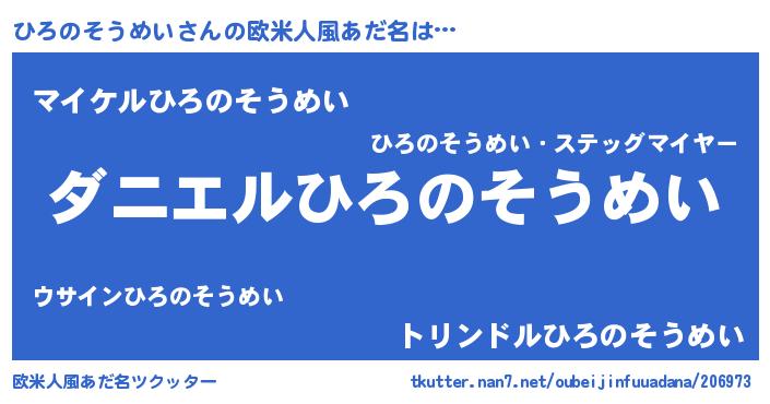 | 男性向けラノベタイトル風あだ名 | 『おまえをオタクにしてやるから、俺をひろのそうめいにしてくれ! 』 |