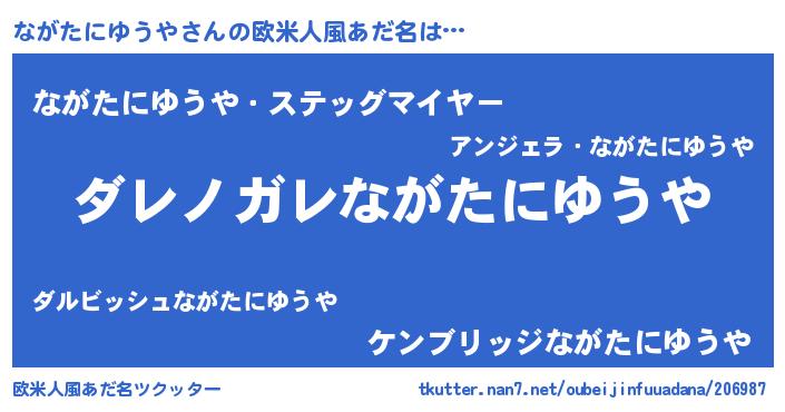 | 男性向けラノベタイトル風あだ名 | 『この素晴らしい世界にながたにゆうやを!』 |