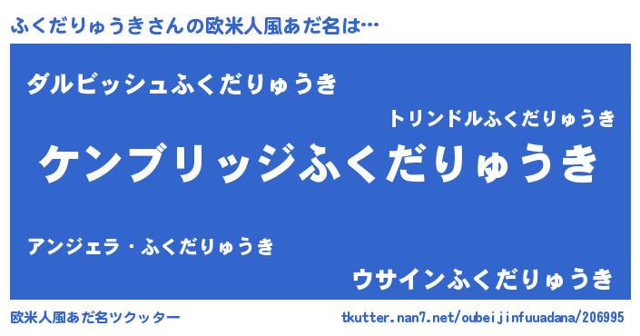 | 男性向けラノベタイトル風あだ名 | 『Re:ふくだりゅうきから始める異世界生活』 |