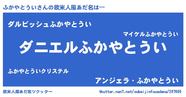 | ヘコむあだ名 | 『ふかやとうい(笑)』『ふかにゅー』 |