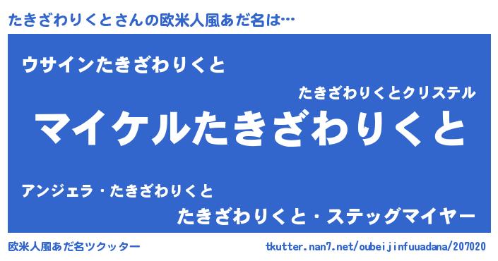 男性向けラノベタイトル風あだ名 | 『タキザワリクトアートオンライン』 |