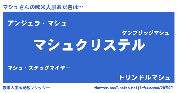 ポケモン風あだ名 | 『マシュダネ』『マシゴンZ』 |