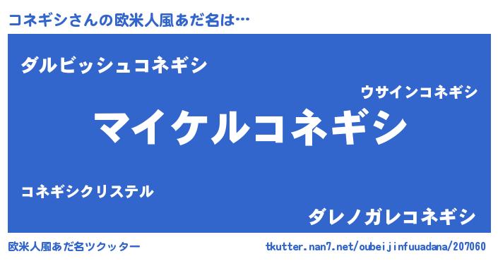男性向けラノベタイトル風あだ名 | 『コネギシの憂鬱』『魔弾の王とコネギシ』 |