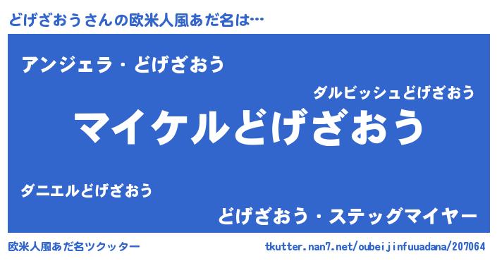 男性向けラノベタイトル風あだ名 | 『どげざおうの憂鬱』 |