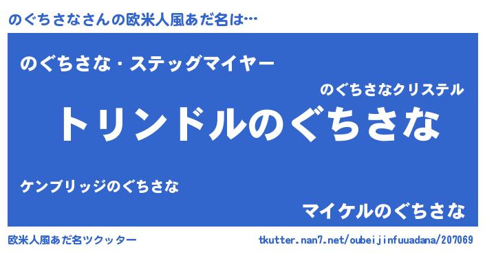男性向けラノベタイトル風あだ名 | 『のぐちさな~年齢イコール彼女いない歴の魔法使い~』 |
