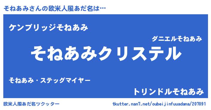 | 意味不明あだ名 | 『そねあみフォーエバー』『自称そねあみ』 |