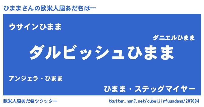 | ヘコむあだ名 | 『ひまま(遠い目)』『ひまっちょ』 |