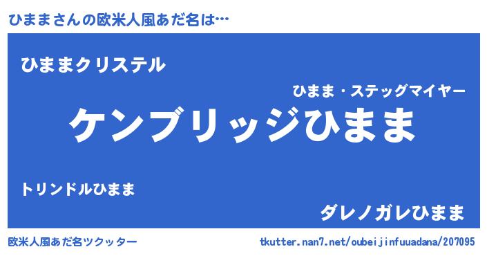 | 意味不明あだ名 | 『自称ひまま』『ひままフォーエバー』 |