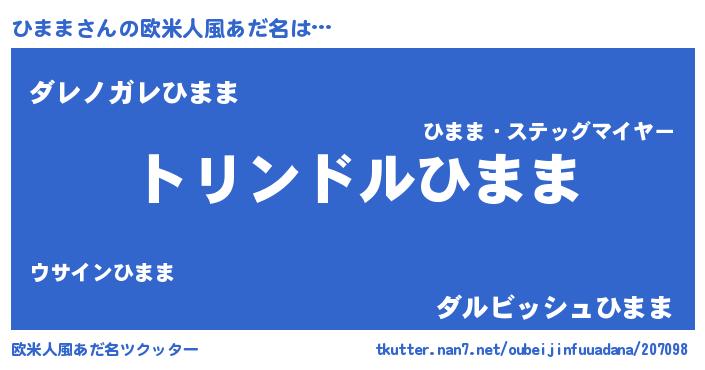 | 男性向けラノベタイトル風あだ名 | 『ヒママスレイヤー』『魔弾の王とひまま』 |