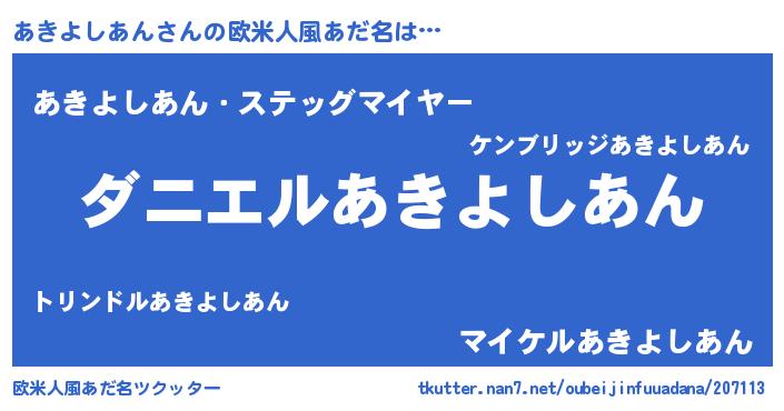 男性向けラノベタイトル風あだ名 | 『ノーゲーム・ノーアキヨシアン』 |