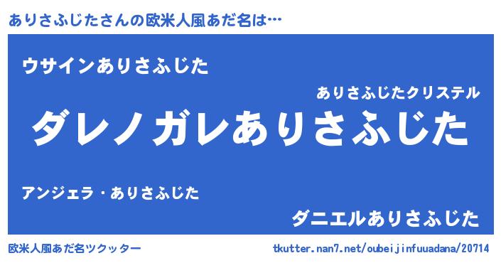 | 男性向けラノベタイトル風あだ名 | 『この素晴らしい世界にありさふじたを!』 |