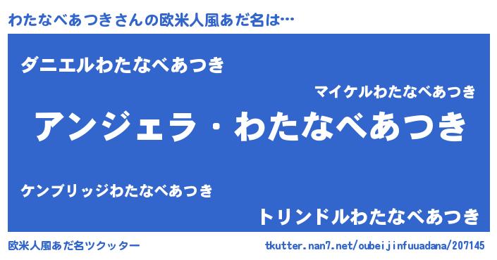 男性向けラノベタイトル風あだ名 | 『はたらくわたなべあつきさま!』 |