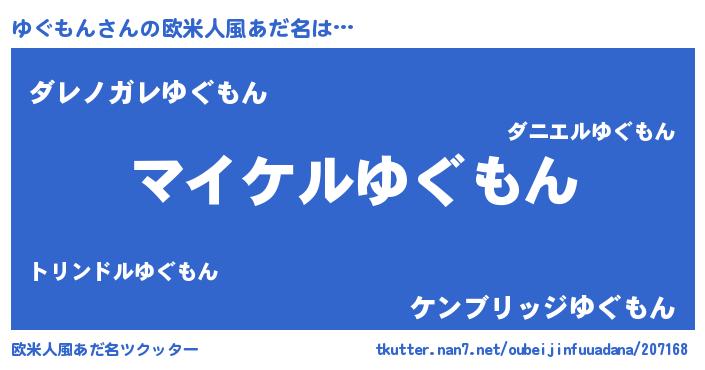 男性向けラノベタイトル風あだ名 | 『ゆぐもんの憂鬱』『魔弾の王とゆぐもん』 |