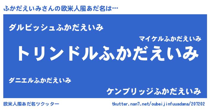 男性向けラノベタイトル風あだ名 | 『転生したらふかだえいみだった件』 |
