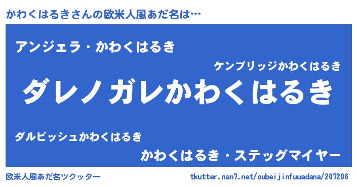 男性向けラノベタイトル風あだ名 | 『この素晴らしい世界にかわくはるきを!』 |