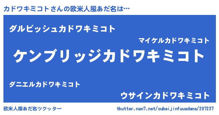 | ことわざ | かわいい子には旅をさせろ『かわいいカドワキミコトには旅をさせろ』 |