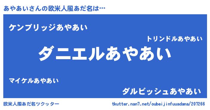 | ヘコむあだ名 | 『あやあい(小並感)』『あやもー』 |