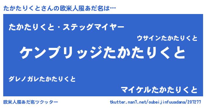 ファンタジー風あだ名 | 『ゼタカトゥ』『カークタカラー』 |