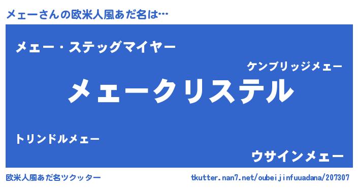意味不明あだ名 | 『メェーフォーエバー』『自称メェー』 |