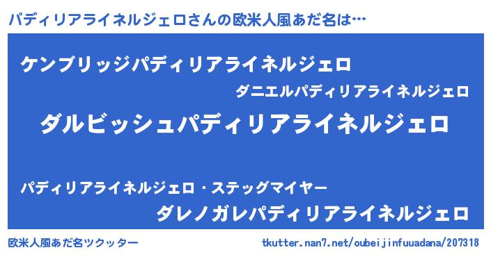 | 男性向けラノベタイトル風あだ名 | 『パディリアライネルジェロという概念が存在しない退屈な世界 』 |