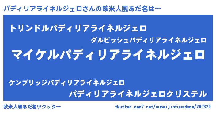 | ヒーロー風カッコイイあだ名 | 『スーパーパディリアライネルジェロ』 |