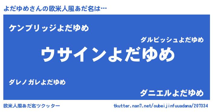 | 男性向けラノベタイトル風あだ名 | 『よだゆめの嫁は女の子じゃないと思った?』 |