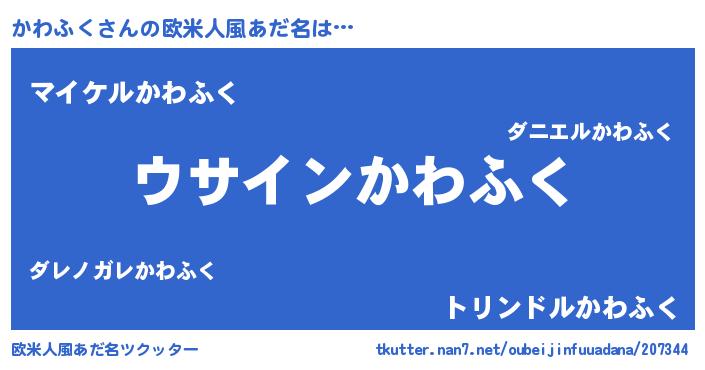 | 男性向けラノベタイトル風あだ名 | 『かわふくの嫁は女の子じゃないと思った?』 |