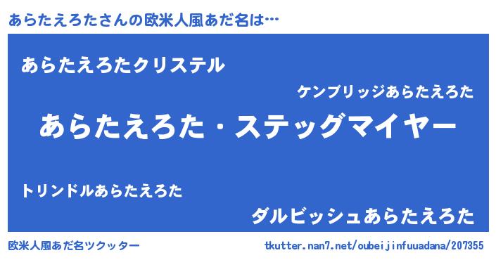 | 女子向けラノベタイトル風あだ名 | 『シンデレラあらたえろた家の靴箱館』 |
