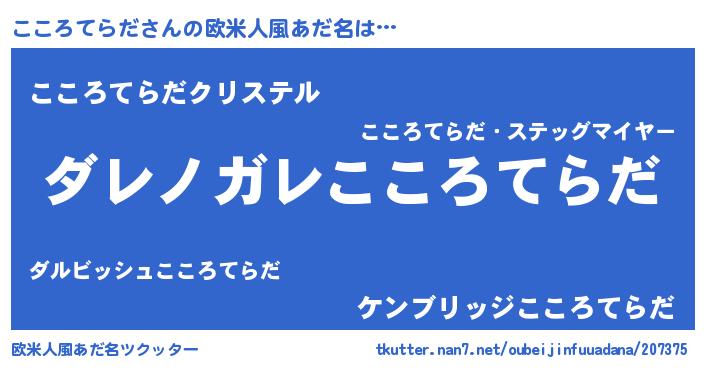 | 意味不明あだ名 | 『住所不定無職こころてらだ(2歳)』 |