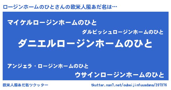 | 男性向けラノベタイトル風あだ名 | 『おまえをオタクにしてやるから、俺をロージンホームのひとにしてくれ! 』 |