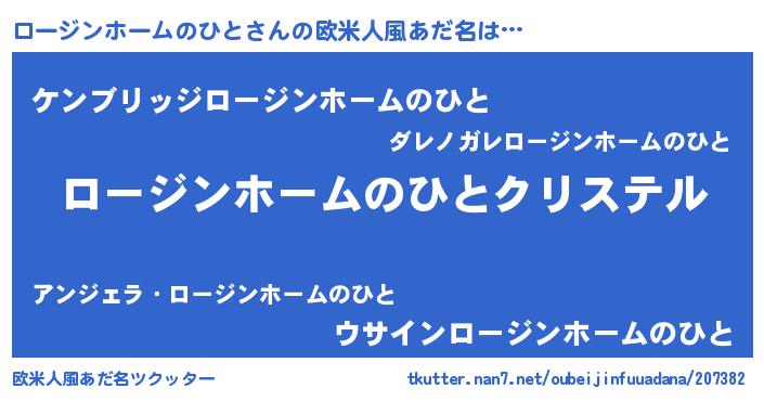 | 男性向けラノベタイトル風あだ名 | 『やはりロージンホームのひとの青春ラブコメはまちがっている 』 |