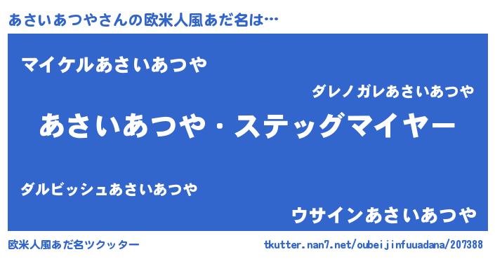 男性向けラノベタイトル風あだ名 | 『緋弾のアサイアツヤ』 |