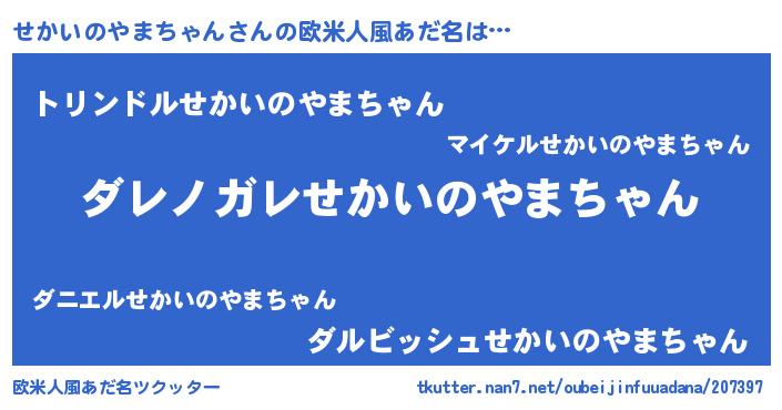 | 男性向けラノベタイトル風あだ名 | 『この素晴らしい世界にせかいのやまちゃんを!』 |