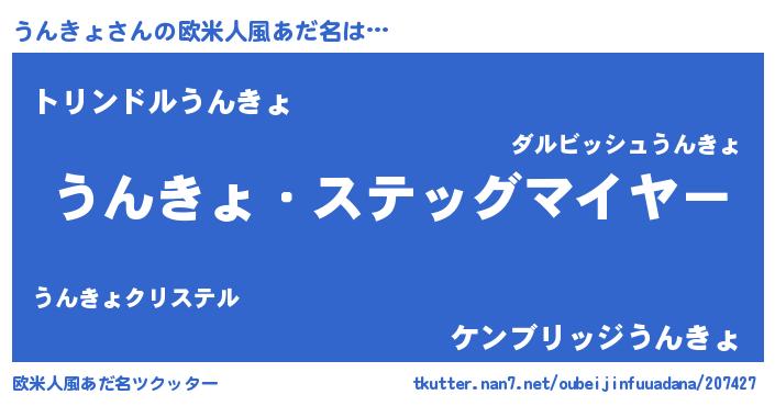 | 男性向けラノベタイトル風あだ名 | 『緋弾のウンキョ』『ウンキョスレイヤー』 |
