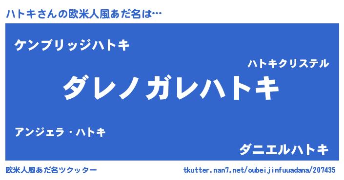 | 男性向けラノベタイトル風あだ名 | 『この素晴らしい世界にハトキを!』 |