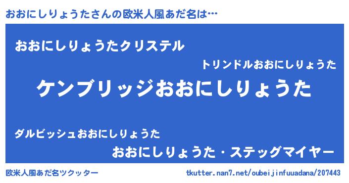 | 意味不明あだ名 | 『自称おおにしりょうた』 |