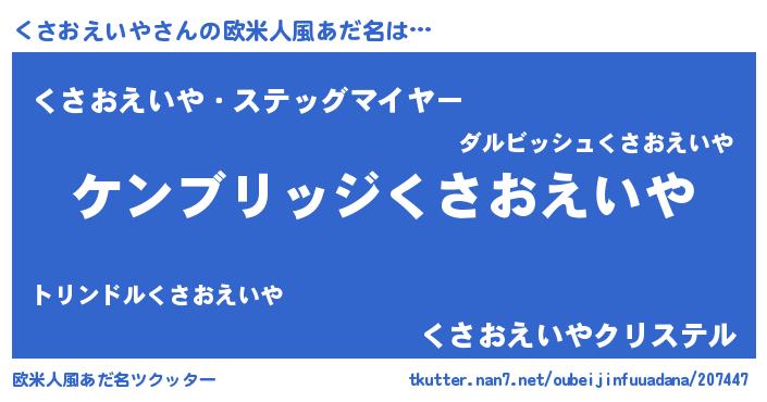 | 意味不明あだ名 | 『自称くさおえいや』 |